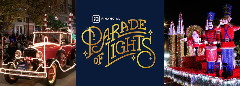 The GM Financial Parade of Lights, originally scheduled for Sunday, November 23, in Downtown Fort Worth, has been postponed one week to Sunday, November 30, at 6 p.m., due to the forecast of heavy rain and storms during the original event time.