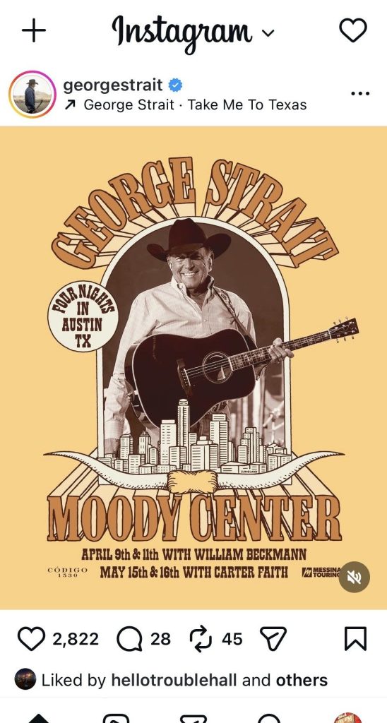 George Strait is coming to Austin to play four shows in the round this Spring. King George announced that he’ll perform concert at the Moody Center on April 9th and 11th with William Beckmann. Then he’ll return to the Moody Center for two more shows on may 15th and 16th with opening act Carter Faith.
