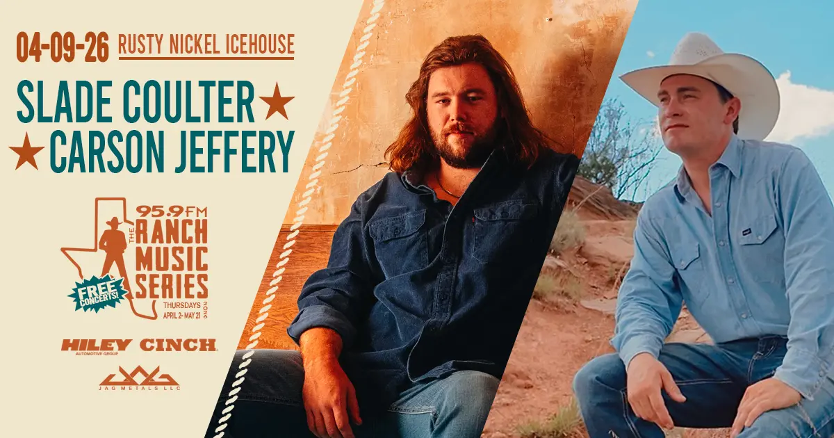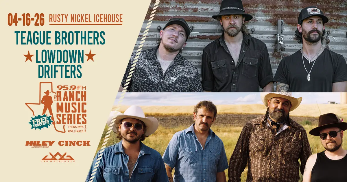 Make plans to leave work early every Thursday this April & May for the 23rd season of The Ranch Music Series at the Rusty Nickel Icehouse in Fort Worth! You bring the friends and we’ll supply the FREE CONCERTS featuring; The Wilder Blue, Slade Coulter, Carson Jeffery, Teague Brothers, Lowdown Drifters, Silverada, Tyler Halverson, Roger Creager, Kody West, Logan Ryan Band & more!